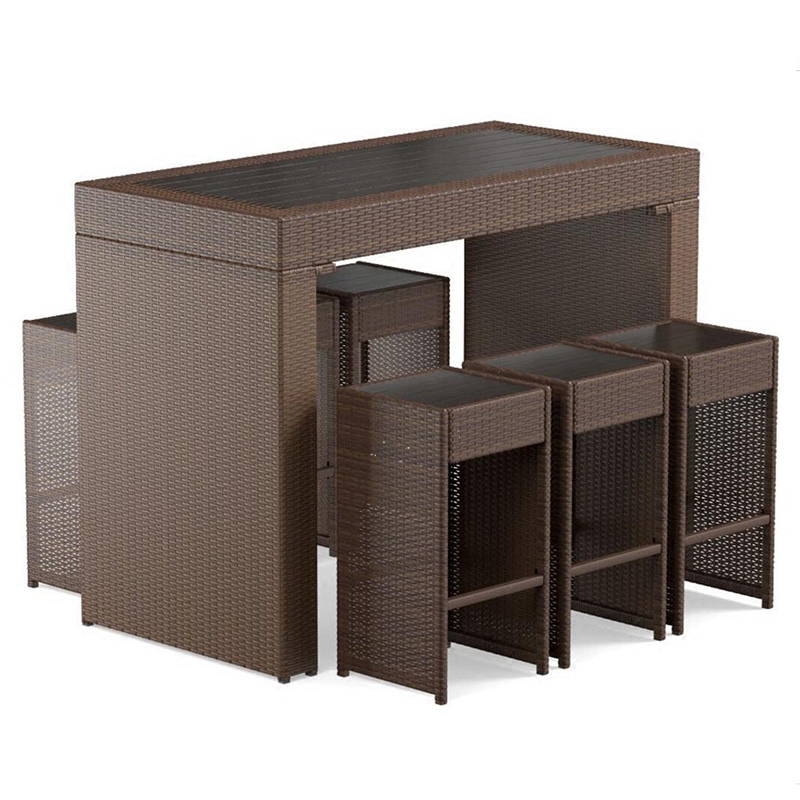 Luxury high bar table and chairs outdoor dining room combination bar table and chairs teahouse rattan imitation rattan chair leisure garden furniture