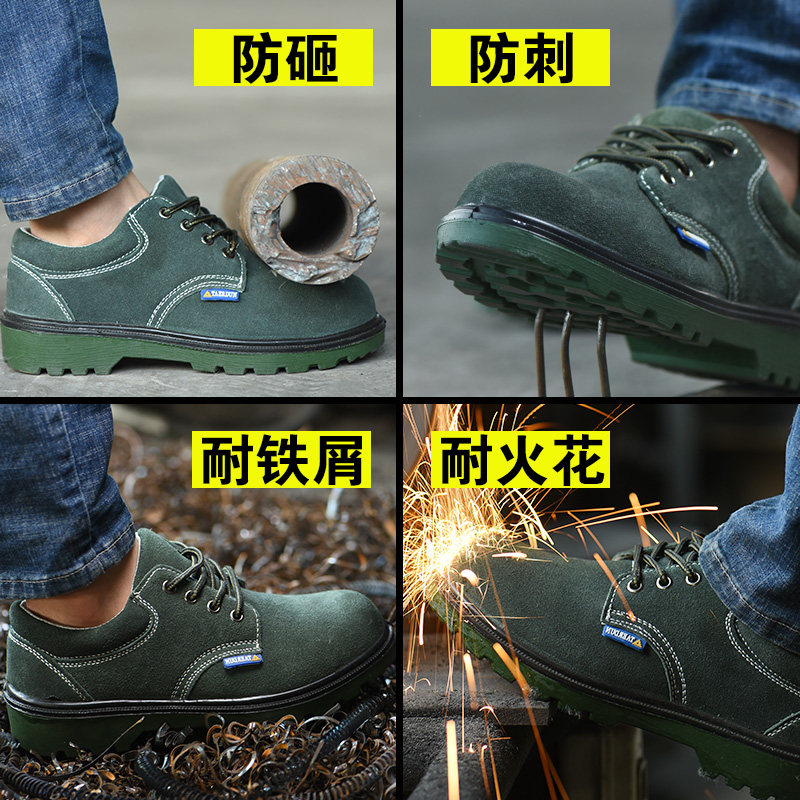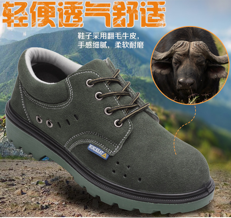 Black with hole-cow leather-lychee-breathable anti-slip and anti-sting black cow leather-lychee thread anti-smash and anti-sting bull leather with hole-breathable non-slip anti-smash and anti-stab
