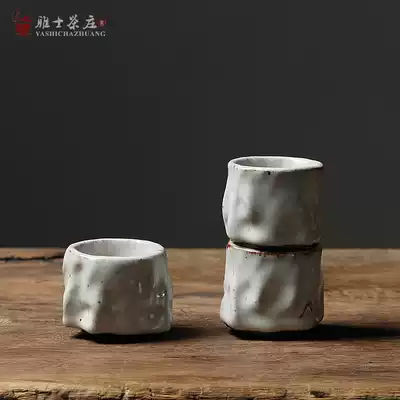 All handmade Master Cup Japanese style and style Zhiye burning tea cup coarse pottery open film Shino Cup personal tea cup