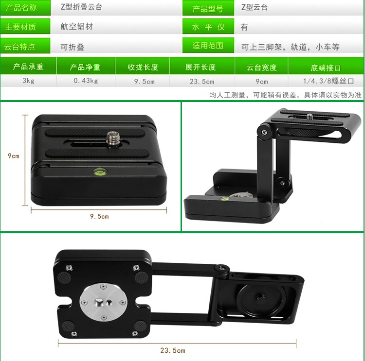 Z-type quick quick-fit board folding tripod head desktop tripod slide rail camera micro-distance frame portable light