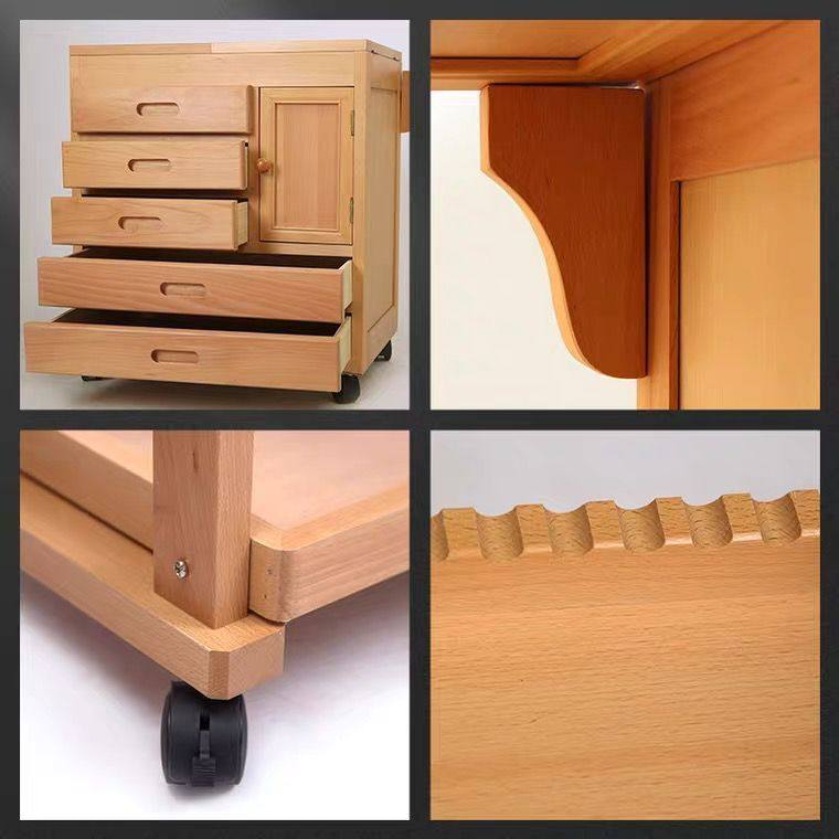 German beech wood painting car oil painting cabinet movable painting car oil painting country painting with wheel oil painting car fine art painting tool