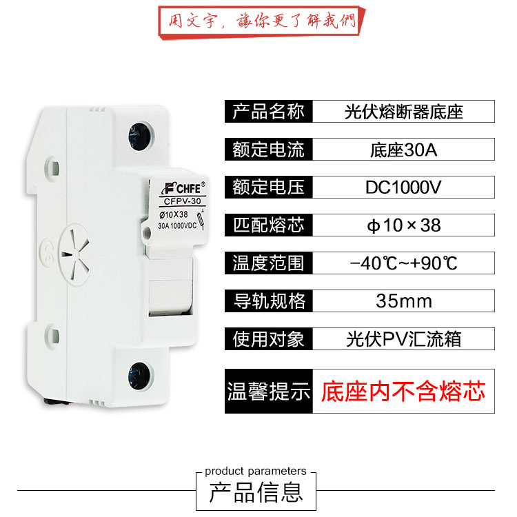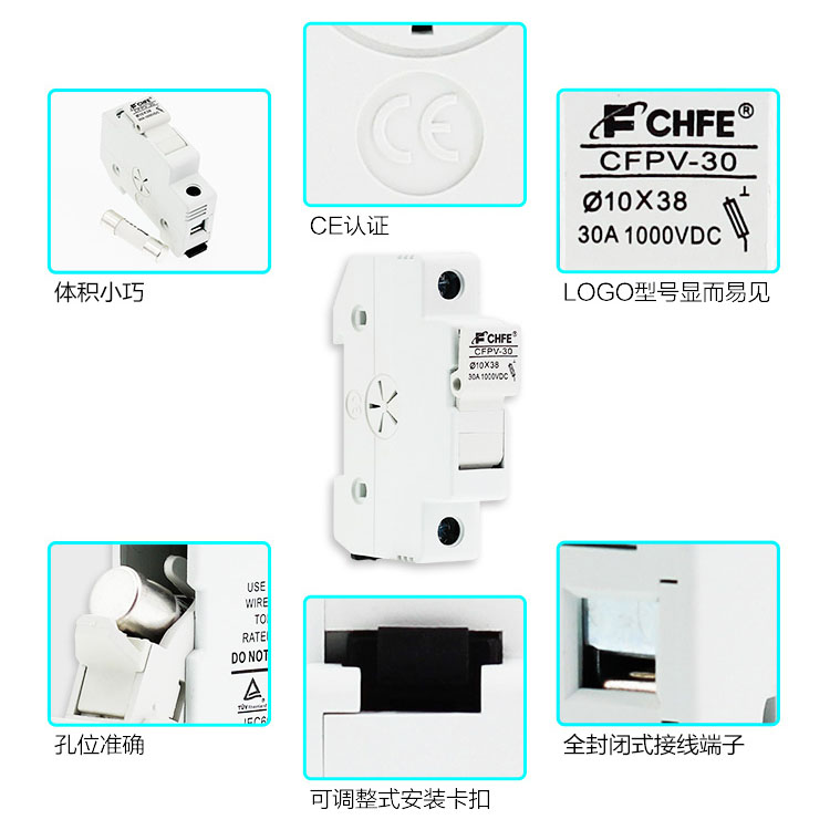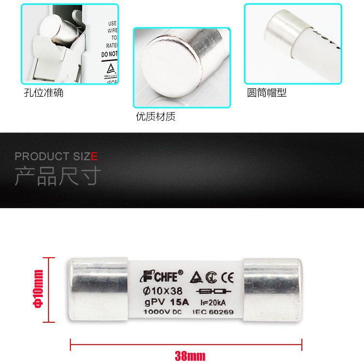 DC fuse base Photovoltaic fuse DC1000V combiner box with core PV-15A10F