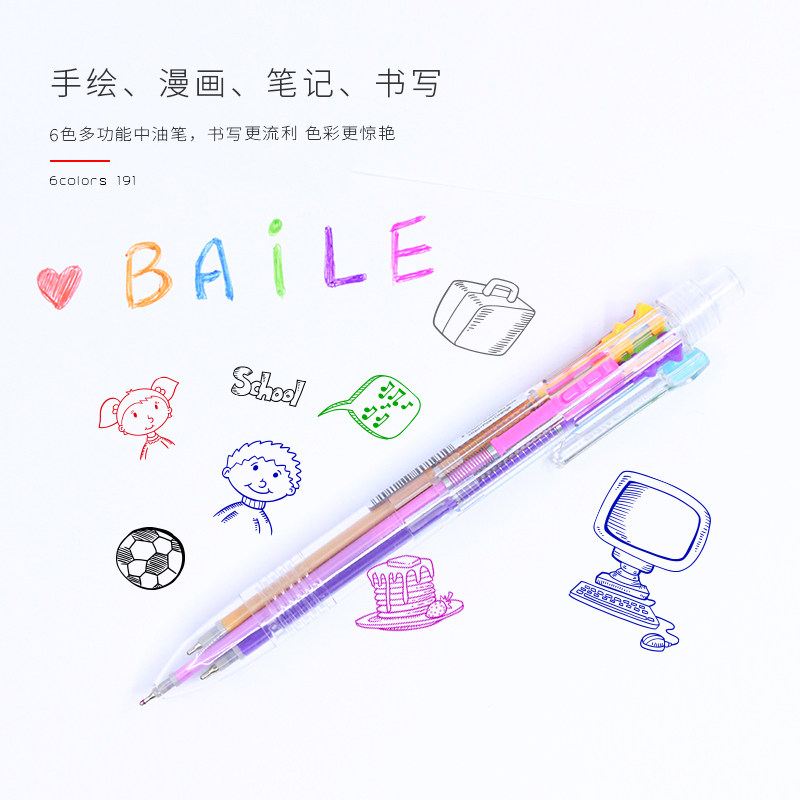 baile BL-191 Creative multi-function six-color press color medium oil pen Multi-color ballpoint pen ballpoint pen