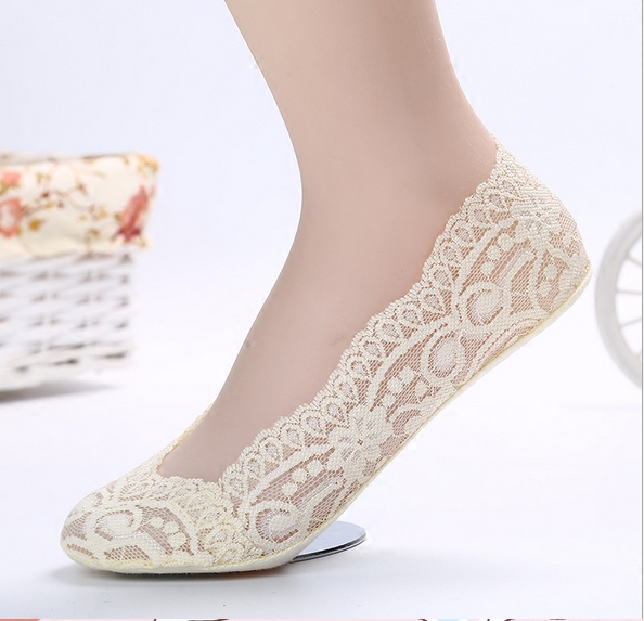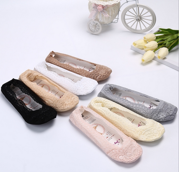 Korean version lace lace invisible shallow boat socks high heels companion silicone non-slip women's socks