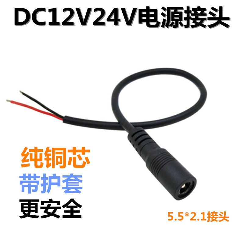 Surveillance Camera Head Centralized Power Supply Source Line dc12v24 Volt Pure Copper Male power plug line Head 5 5 * 2 1