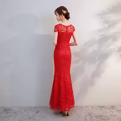 Red bridal toast dress cheongsam 2019 new summer Chinese wedding dress female fishtail cheongsam skirt long version