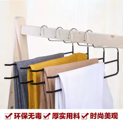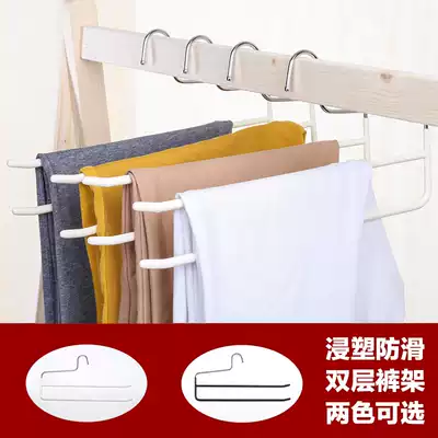 Non-slip pants rack storage artifact double-layer multi-function towel rack Wrought iron impregnated household pants storage two packs