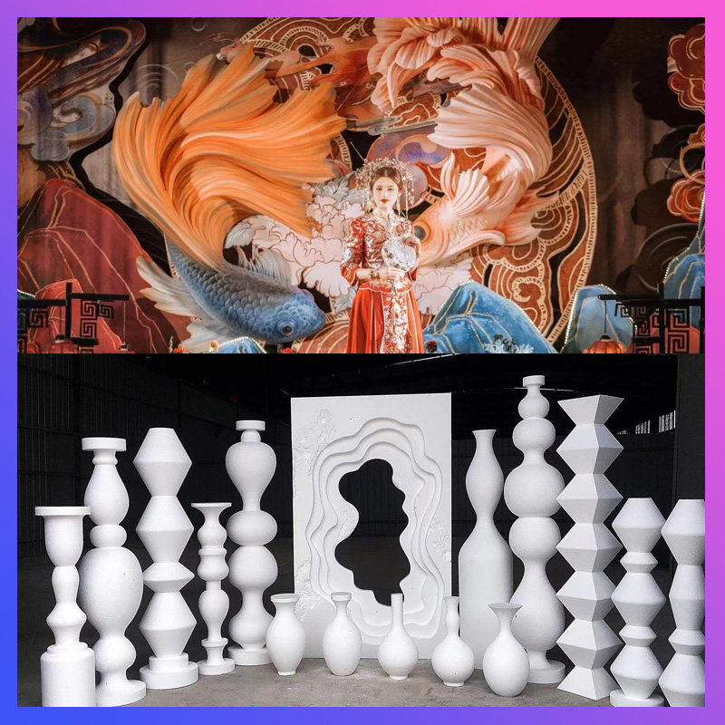 Wedding Celebration Foam Sculpture Custom Castle Arch model European-style wedding Bubble Sculpture Stage background Decorative Props Swing-Taobao