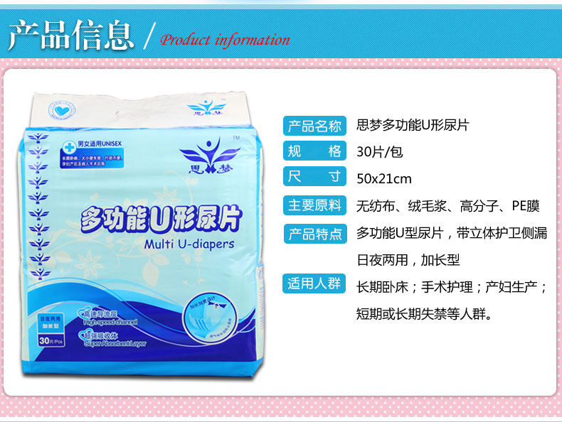 Dream adult diapers for the elderly multi-functional U-shaped diapers 30 packs of diapers 22*50cm