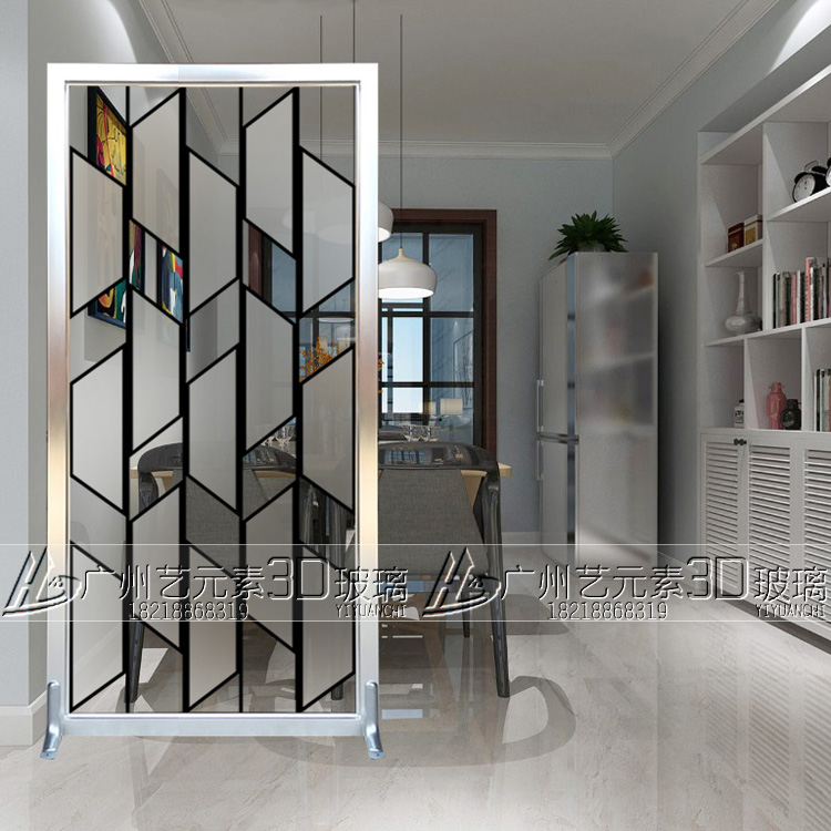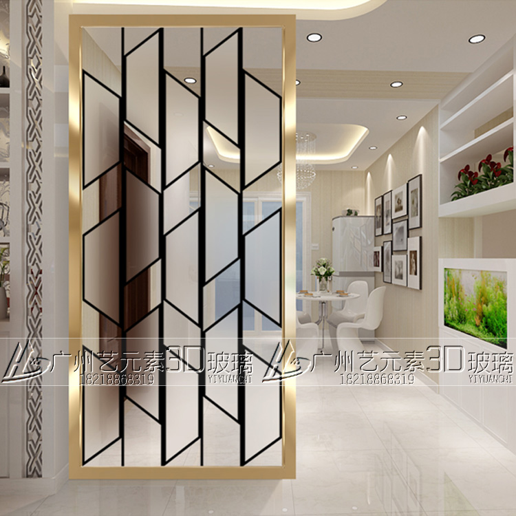 Art glass partition modern minimalist carved screen Xuanguan Background wall Process glass double face frosted door