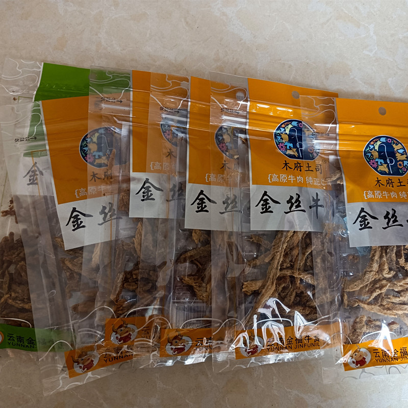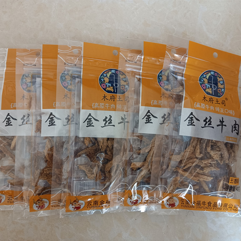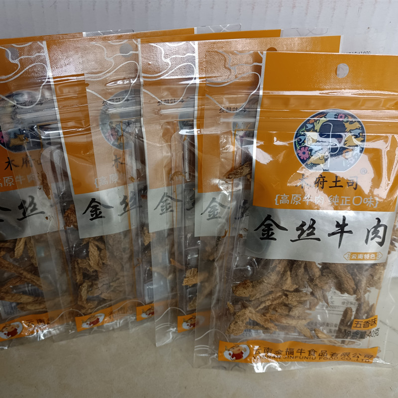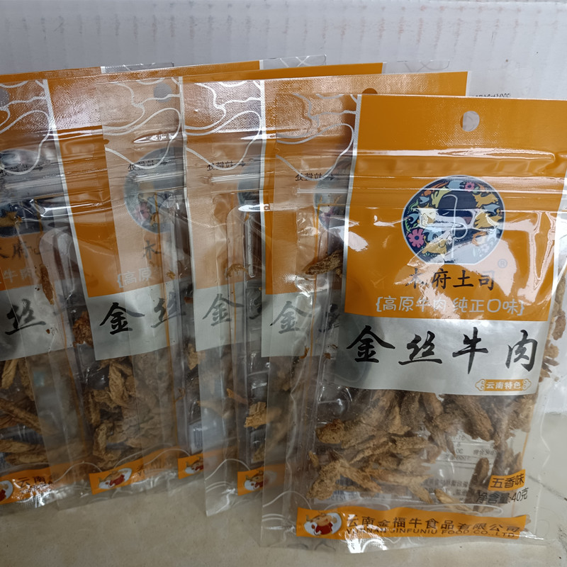 4 Bags Yunnan Special Wood Prefectural Earth Division Gold Wool Beef Strips 40g Gold Foxes Brush Bull Bar Beef Dry 5 fragrant and spicy