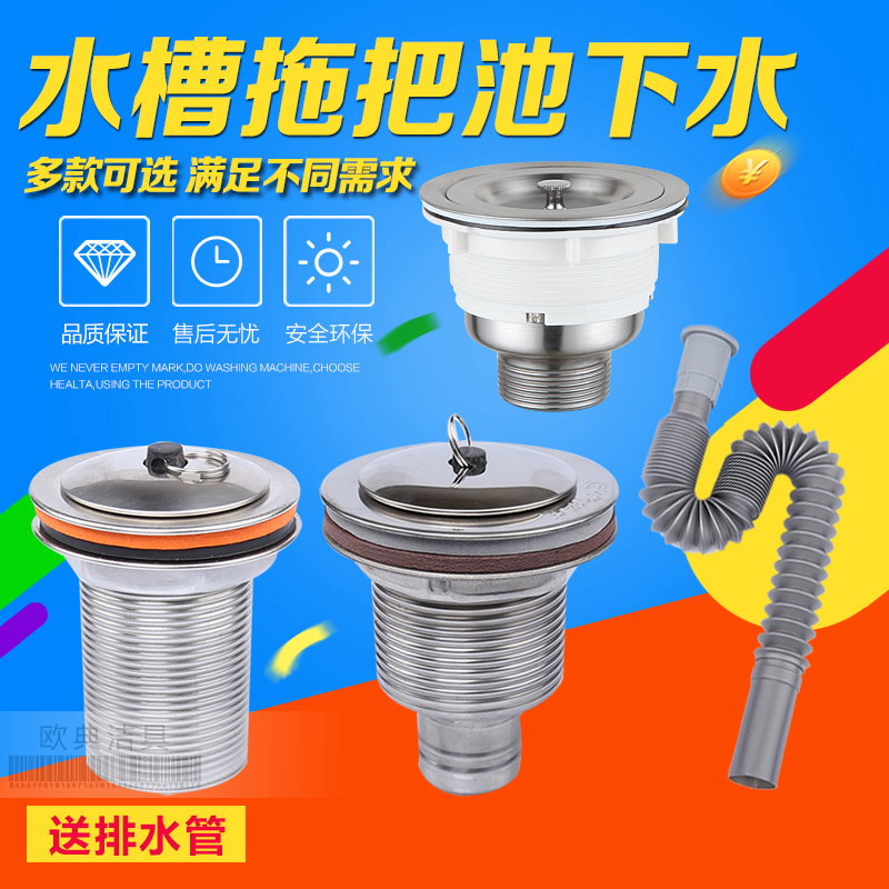 Stainless steel mop pool drainer Laundry pool drain outlet mop basin leakage pipe sleeve assembly 110 50 40