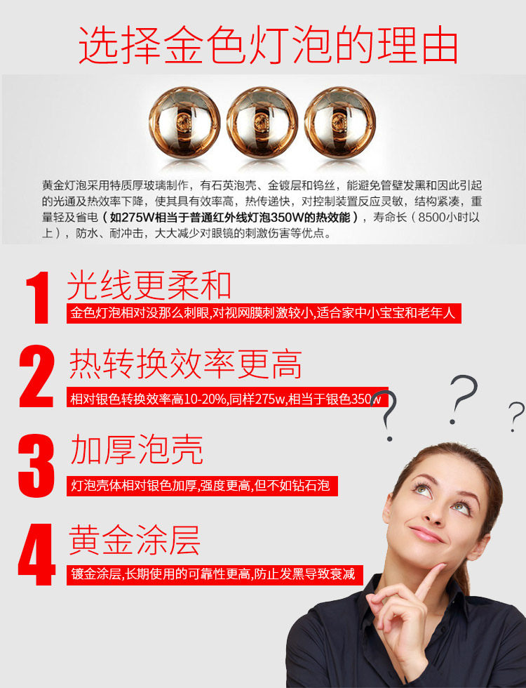 Please oversize the old bulb size remake size unsuitable will not be able to use buy 1 send 1 (beat 1 hair 2) heating bulb power all 275w silver color 275w length 160 diameter 115