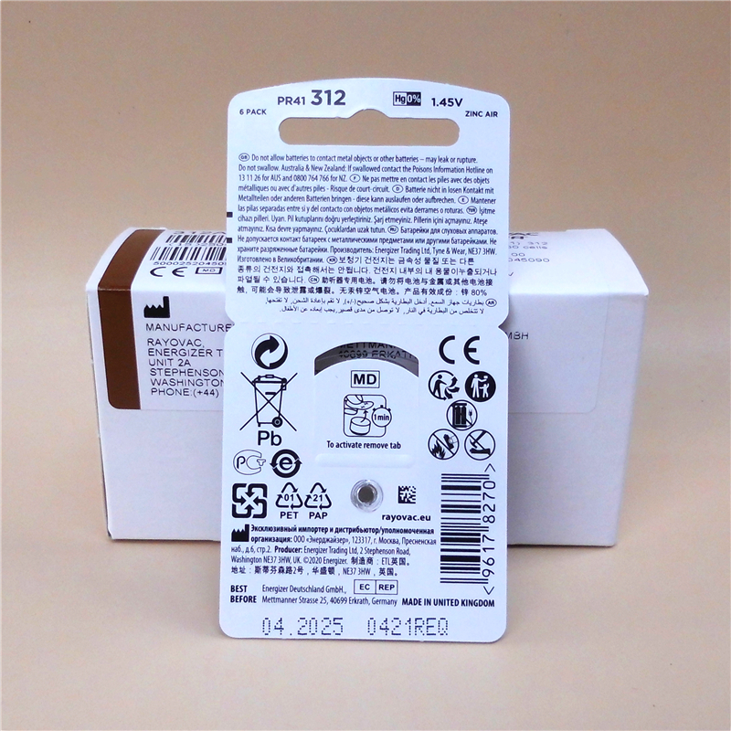 British import Retwite RAYOVAC EXTRA312 Number of hearing aids PR41 1 45V zinc empty A312