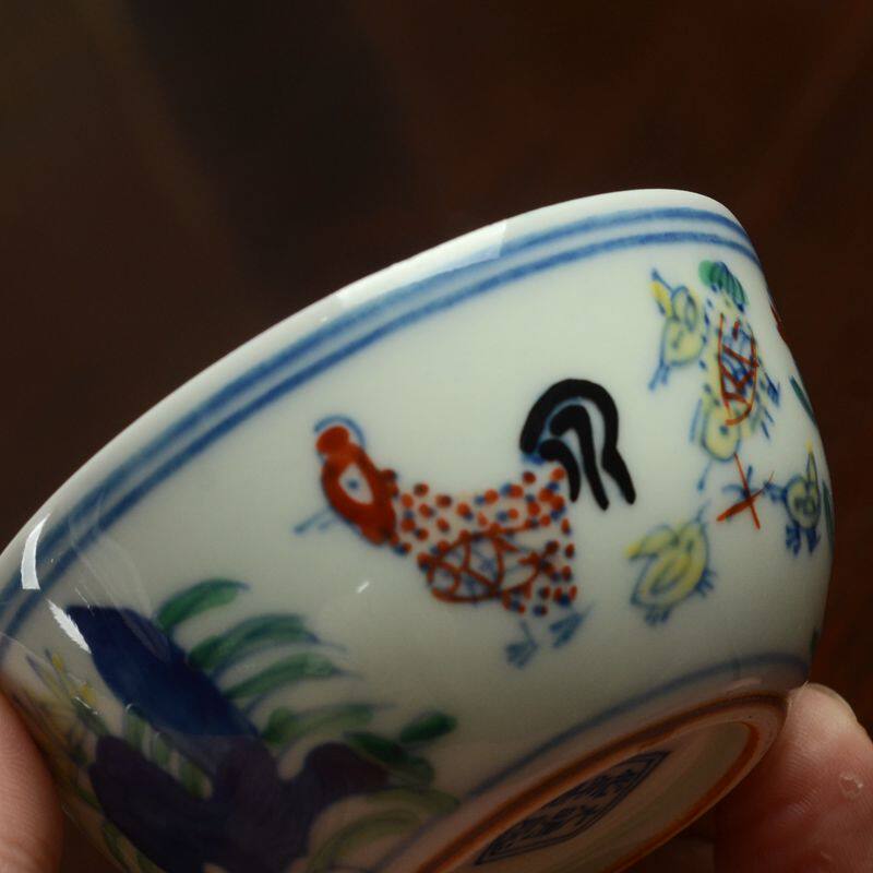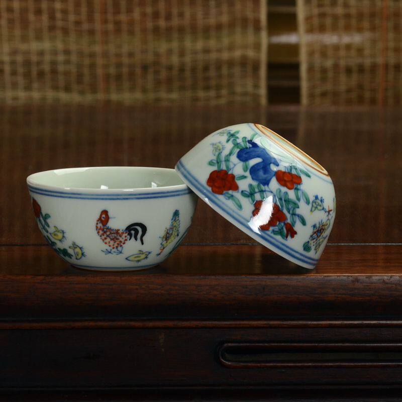 Jingdezhen hand-painted bucket color imitation ancient Ming Chenghua Colorful Cock Cylinder Cup Ceramic Tea Tea Cup Tea Cup