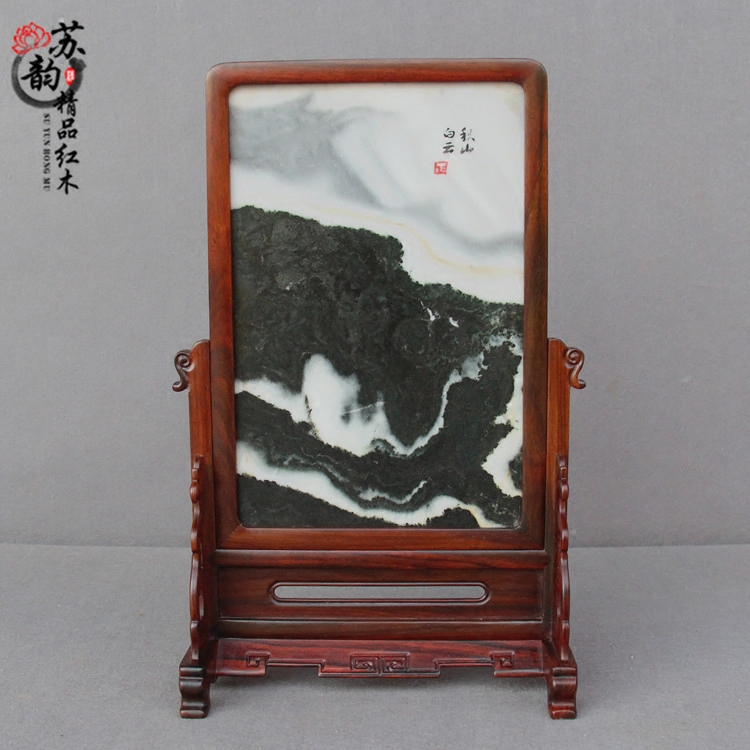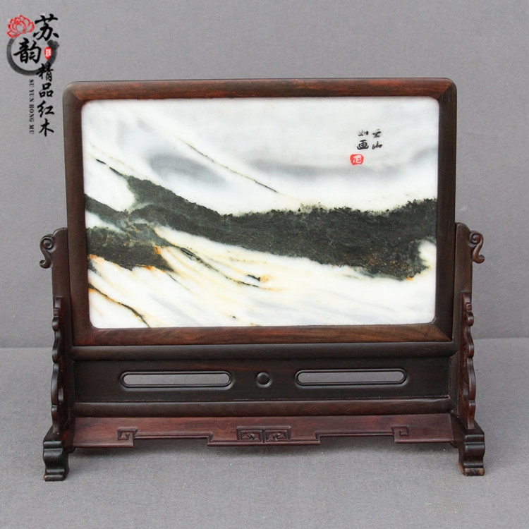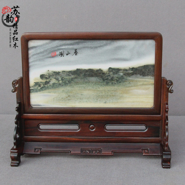 Redwood screen solid wood mahogany screen with marble countertop screen office wooden carving piece red acid branch screen