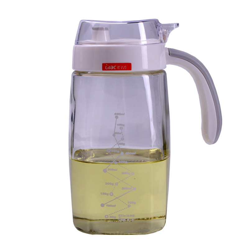 Lilac large glass oil pot leak-proof oil bottle soy sauce bottle kitchen supplies oil control pot seasoning bottle 820ml