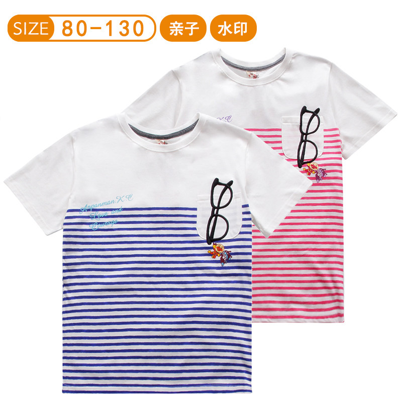:Anpanman Warriors cotton parent-child outfit a family of three summer glasses striped short-sleeved T-shirt