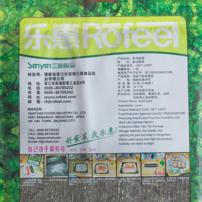 Lehui Sushi Seamas 30g*3 pack of large package sushi ingredients seaweed purple tablet packaging materials dedicated to ingredients