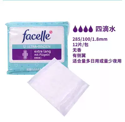 3-pack German facelle ultra-thin cotton soft wing guard tampon lengthened 28cm four drops of water 4 fragrance-free 12 pieces