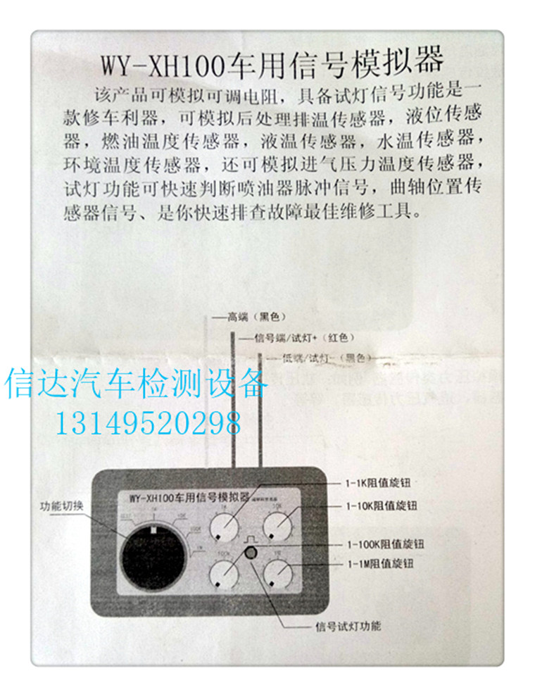 WY-XH100 car signal simulator analog Sensor test lamp car circuit repair tool resistance potential