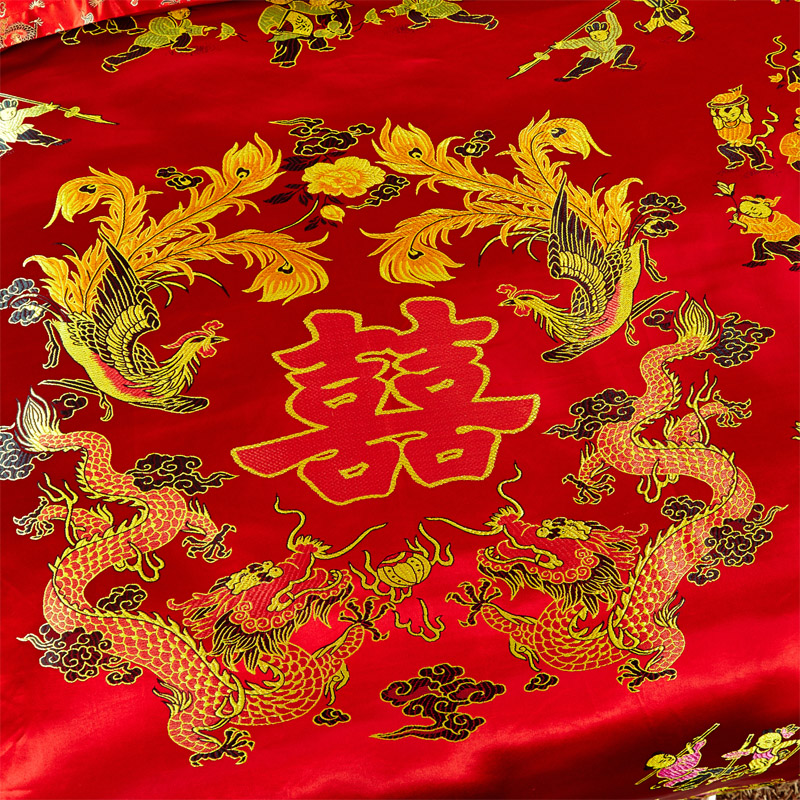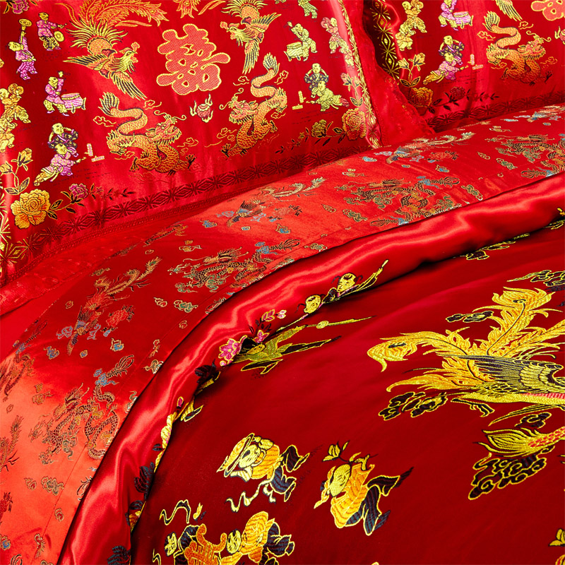 Silk brocade satin wedding celebration quilt cover by face silk forged by hood wedding happy quilt Longfeng 100 Photos Wedding items Great Red