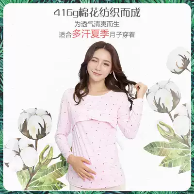 Breastfeeding coat cotton long sleeve postpartum out large size breastfeeding moon clothing pregnant women spring and autumn air conditioning clothing pajamas