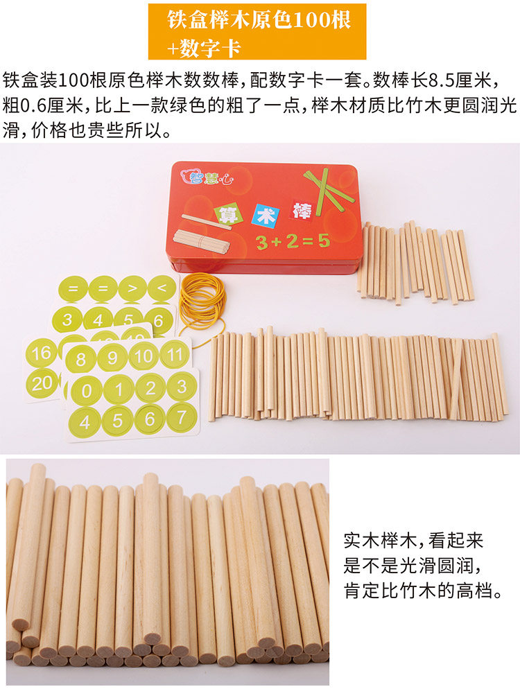 Children's kindergarten primary school students math grade one or two extra numbers of numerical stick solid log - colored teaching tools