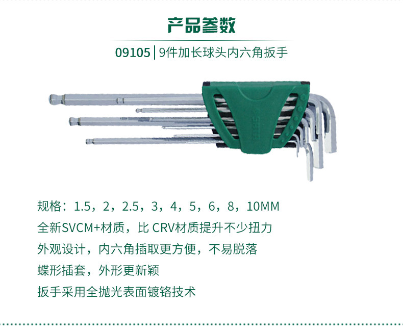 Shida tools special long ball head hex wrench 9-piece set 09101 09103 09105 09107