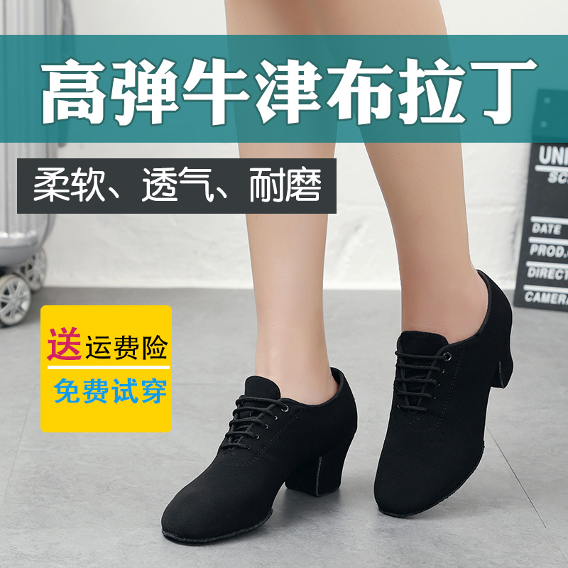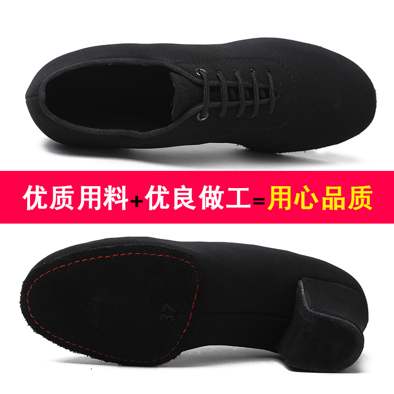 Latin dance shoes Medium heel modern shoes Two points Oxford cloth teacher shoes Female adult dance shoes Sailor Square dance shoes