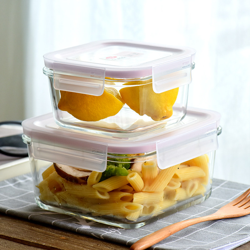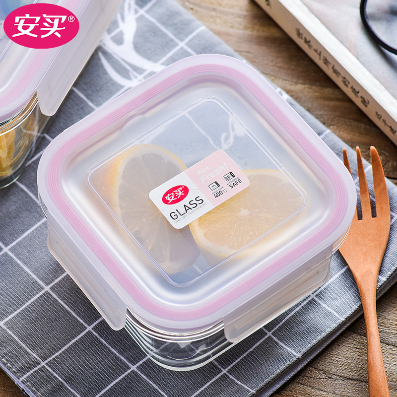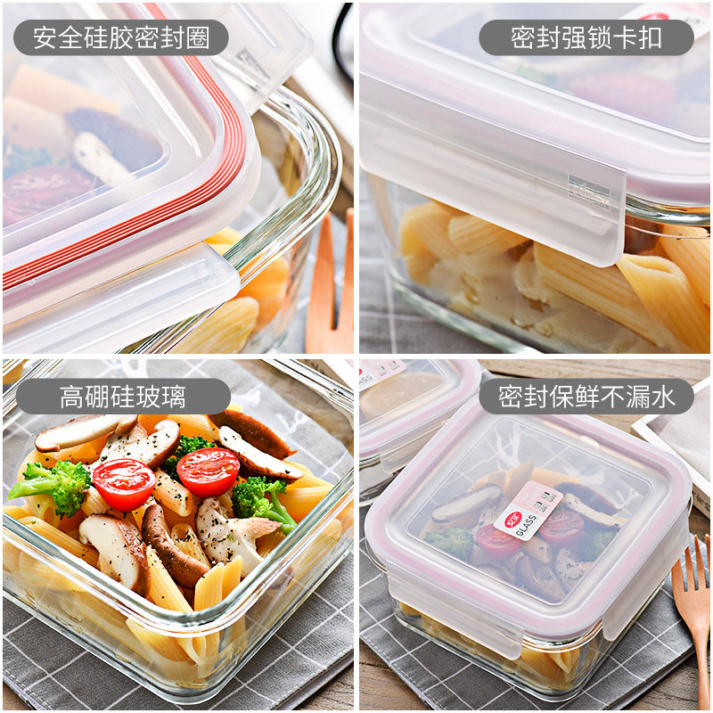 Anbuy glass lunch box microwave heating bowl with lid for work family with meal when the box seals the box