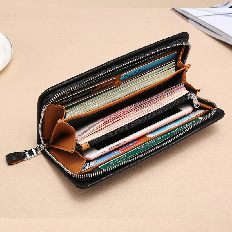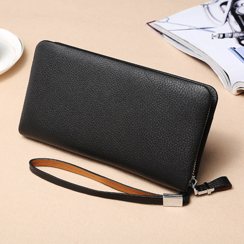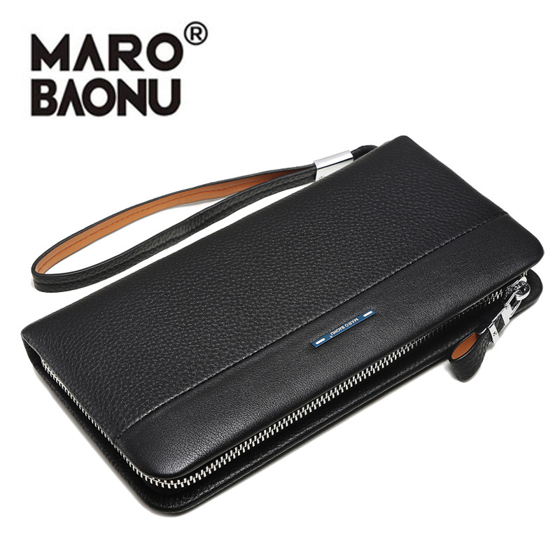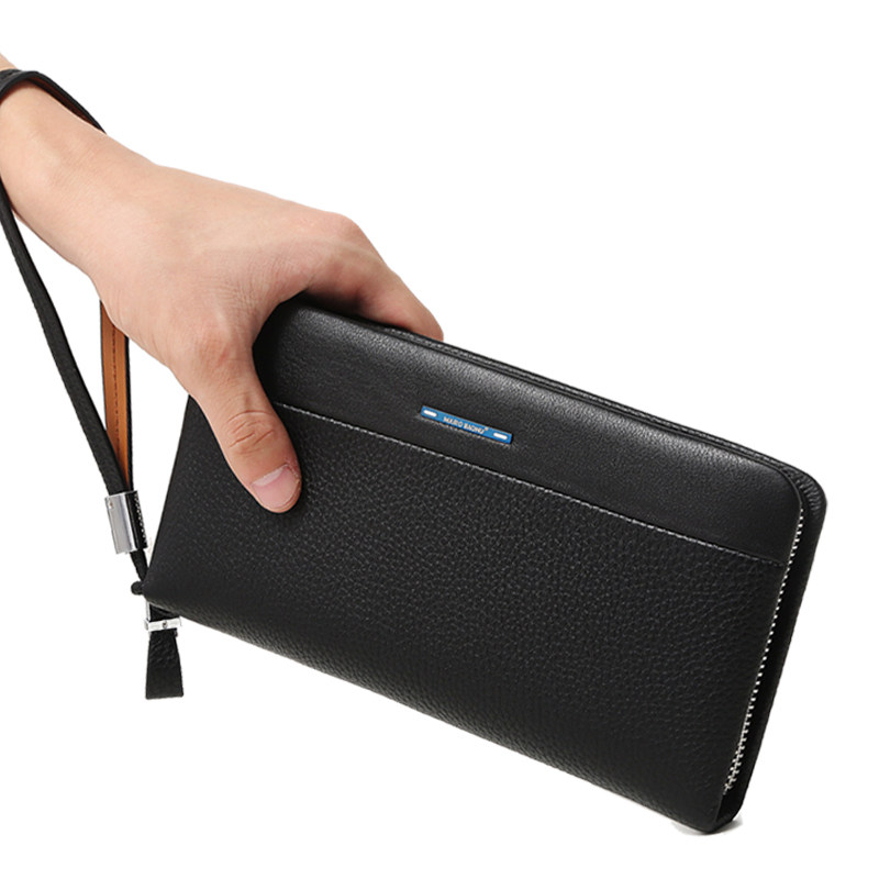 Manbaonu Men's Handbag Long Wallet Casual Business Men's Zipper Cowhide Clutch Bag Leather Bag Men's Bag Clutch