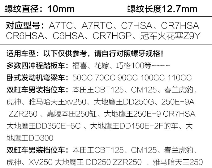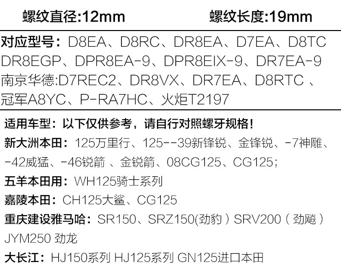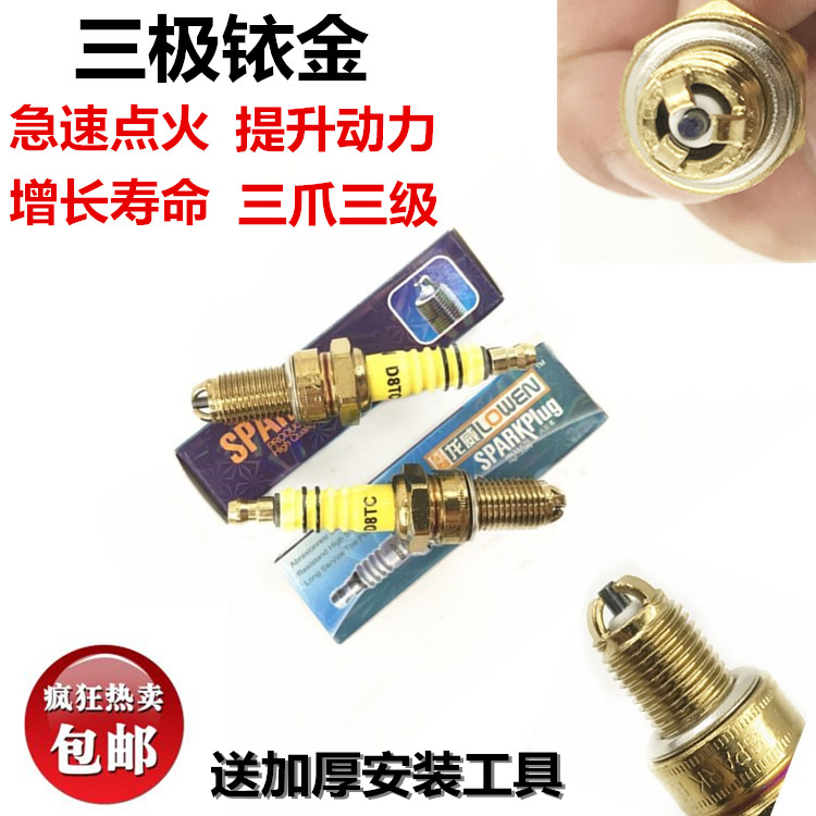 Locomotive spark plug three-pole three-jaw iridium spark plug 70 90 110 125 150 curved beam pedal