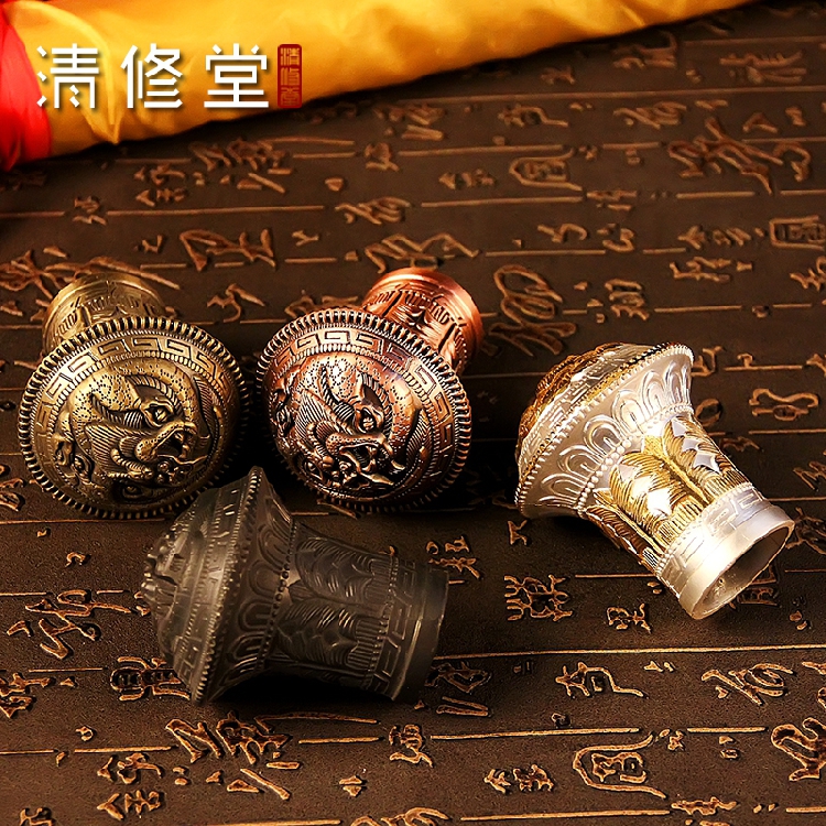 Home Goods Alloy Tangka Shaft Head Eight Auspicious Card Rolls Tango heads Beautifully Carved caliber 2 5cm One
