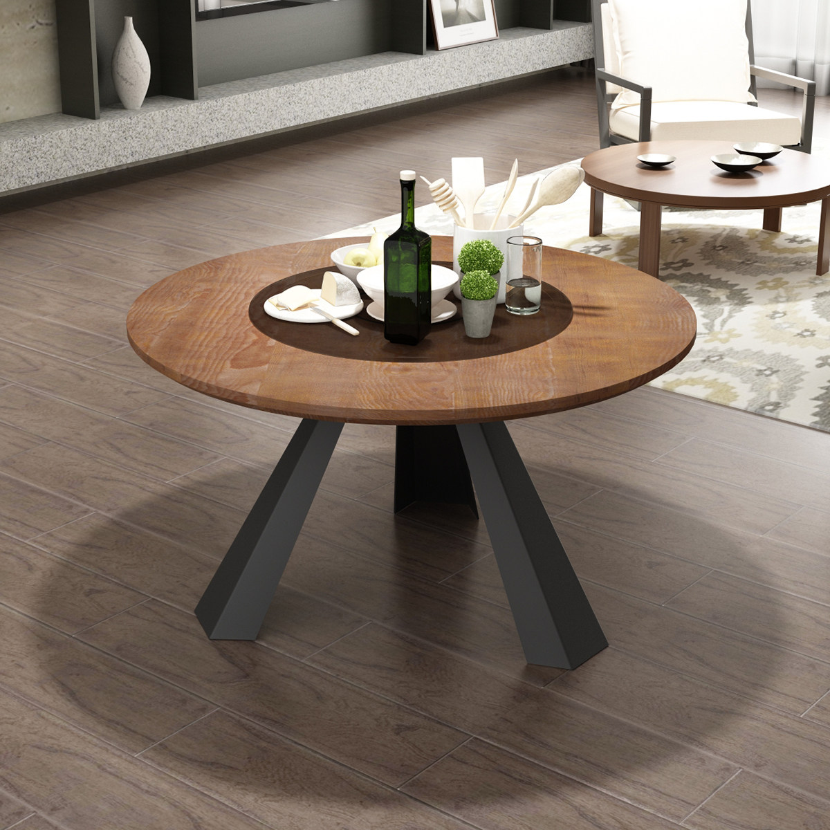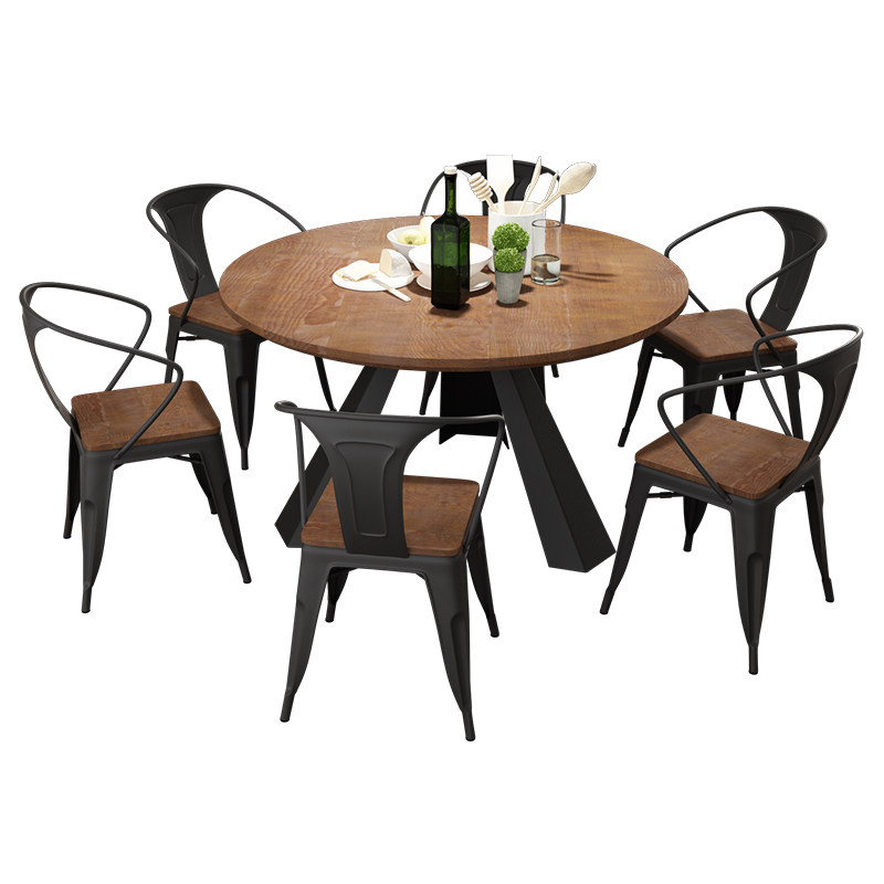 Solid wood iron art 8 people big round table with turntable catering shop table industrial wind themed dining room hot pot table 1003