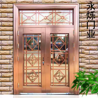 Stainless steel door 304 entry door Rose gold glass anti-theft door imitation copper villa door outdoor entry door