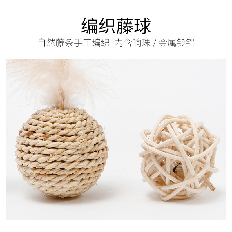 Pet toys Rattan sound bell ball Feather toy ball Cat rattan ball chase and tease cat toys Cat self-hi play