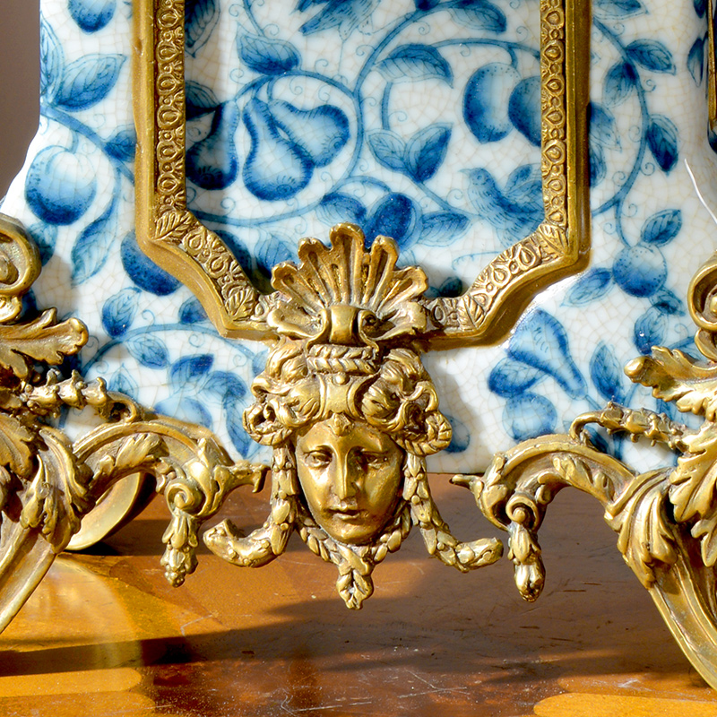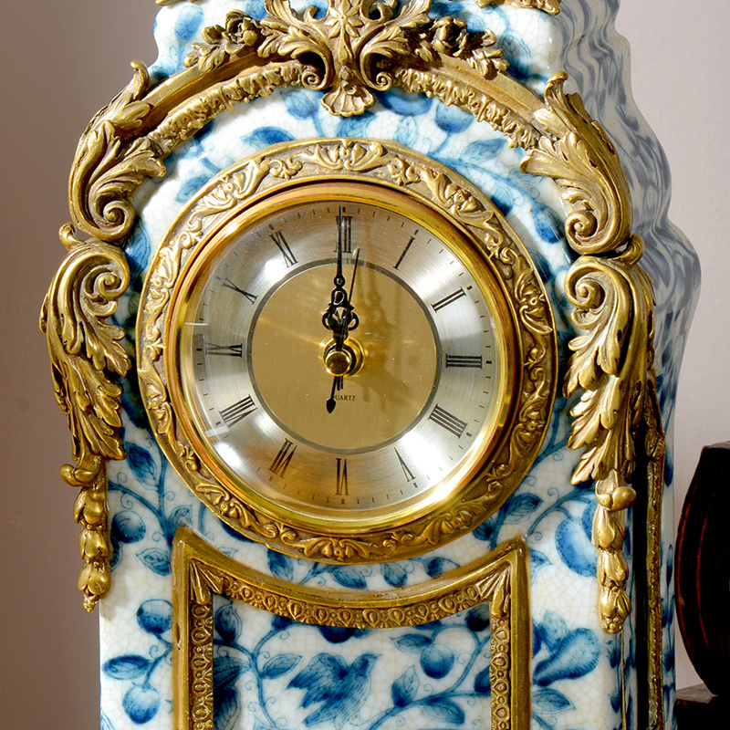 American European high-grade luxury ceramic with copper decorative table clock clock Blue and white porcelain art clock crafts decoration