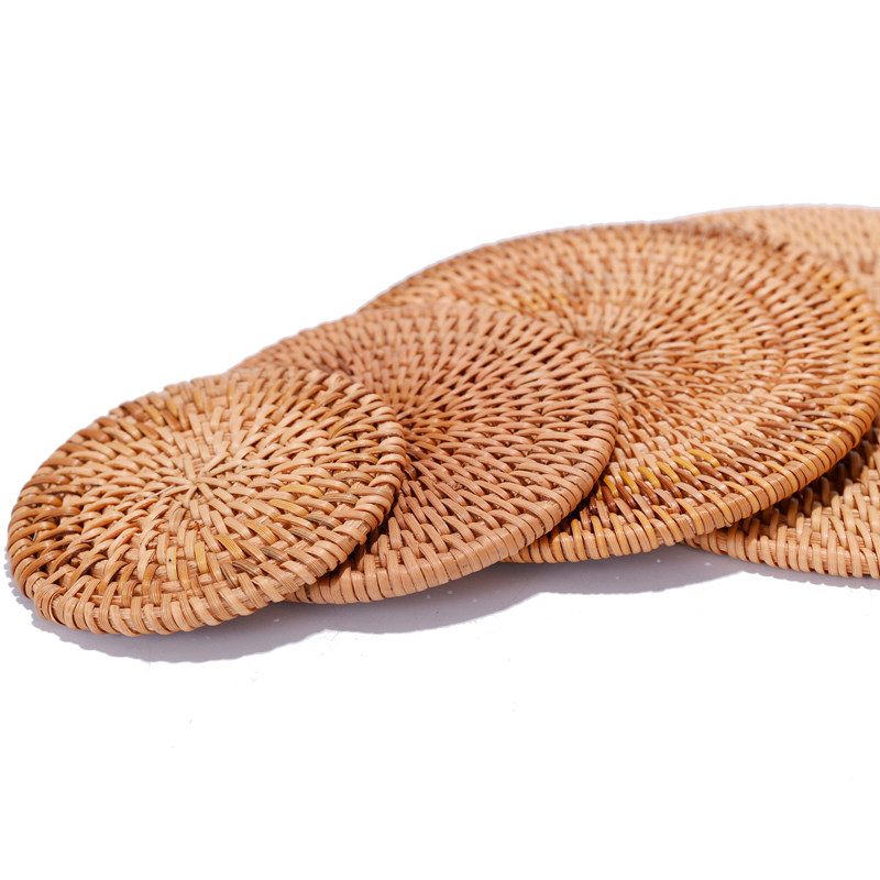 Hand woven Vietnamese rattan chai cup cushion table plate heat insulation cushion bowl cushion tea cup cushion dining cushion tea road accessories