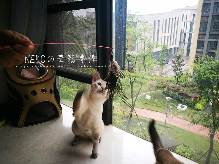 Wire teasing cat stick Cat Stick Handmade Homemade Replacement Head Peacock Hair Pearl Feather feather feather buckle detachable