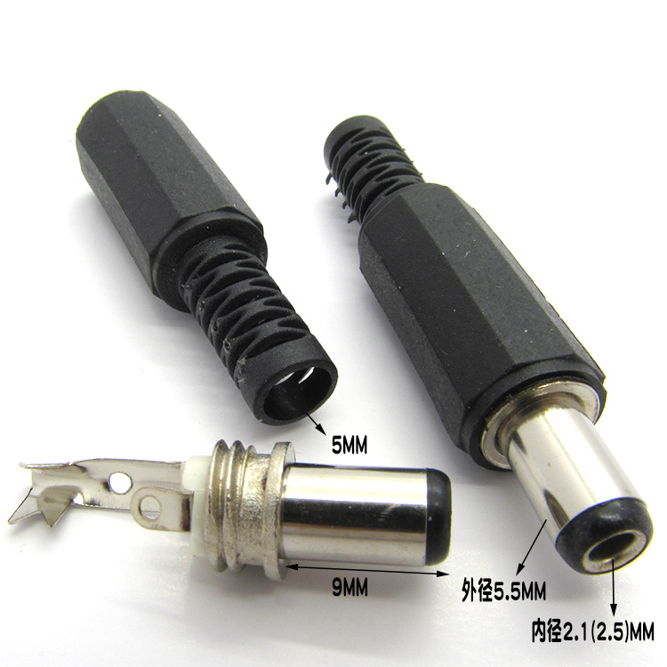 DC plug 5 5MM-2 1MM DC power plug 5 5*2 5MM (short 9MM) welding wire