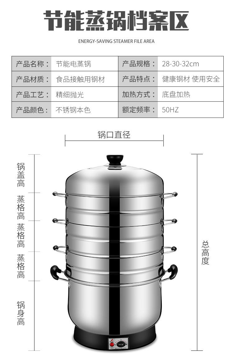 Maoteng brand same specification general thickened stainless steel electric steaming soup pot hot pot steamer grid glass cover
