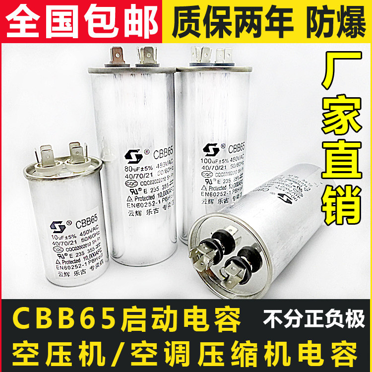 CBB65 Air conditioner capacitor 5 6 8 10 12 15 75 80 90 100UF Compressor capacitor 450V