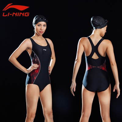 Li Ning woman's conservative even body triangle swimsuit gathers to cover the slim hot spring professional competition swimsuit