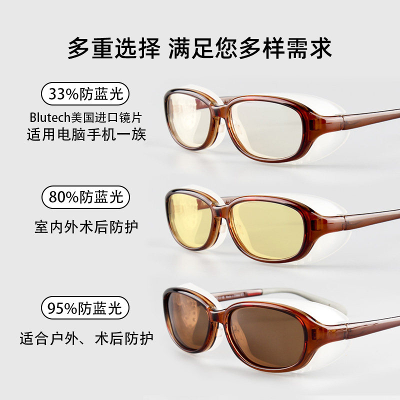 American bluetech imported lens yellow lens suitable for mild and moderate photophobia Brown lens suitable for severe photophobia photochromic lens custom American bluetech lens frame color and size