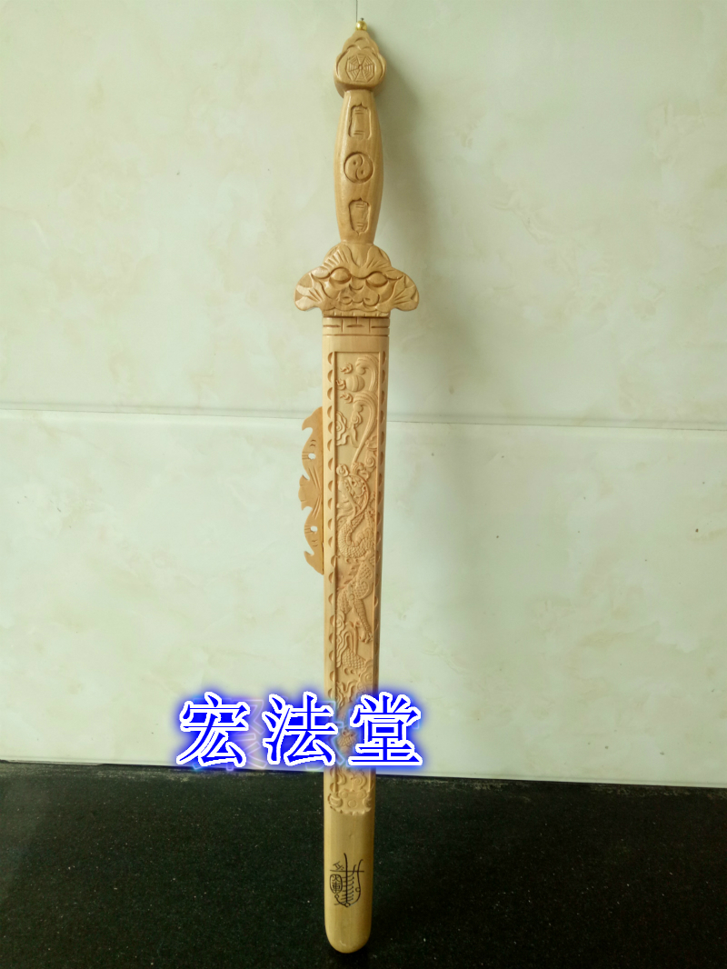 Taoist Artifact Tianshi Peace Sword Seven Star Peach Wood Sword Carved Peach Wood Sword Dragon Tiger Seven Star Peach Wood Sword
