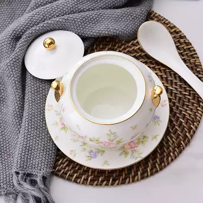 Bone China stew pot with lid Water-proof bird's nest shark's fin stew soup soup meal cup pure white steamed egg ceramic stew pot soup tableware