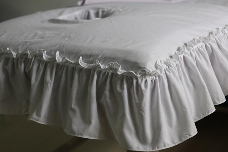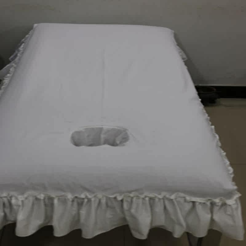 Beauty Salon All-cotton White Lotus Leaf Edge Bedcover Hospital Blind Massage Physiotherapy Pure Color Polyester with holes