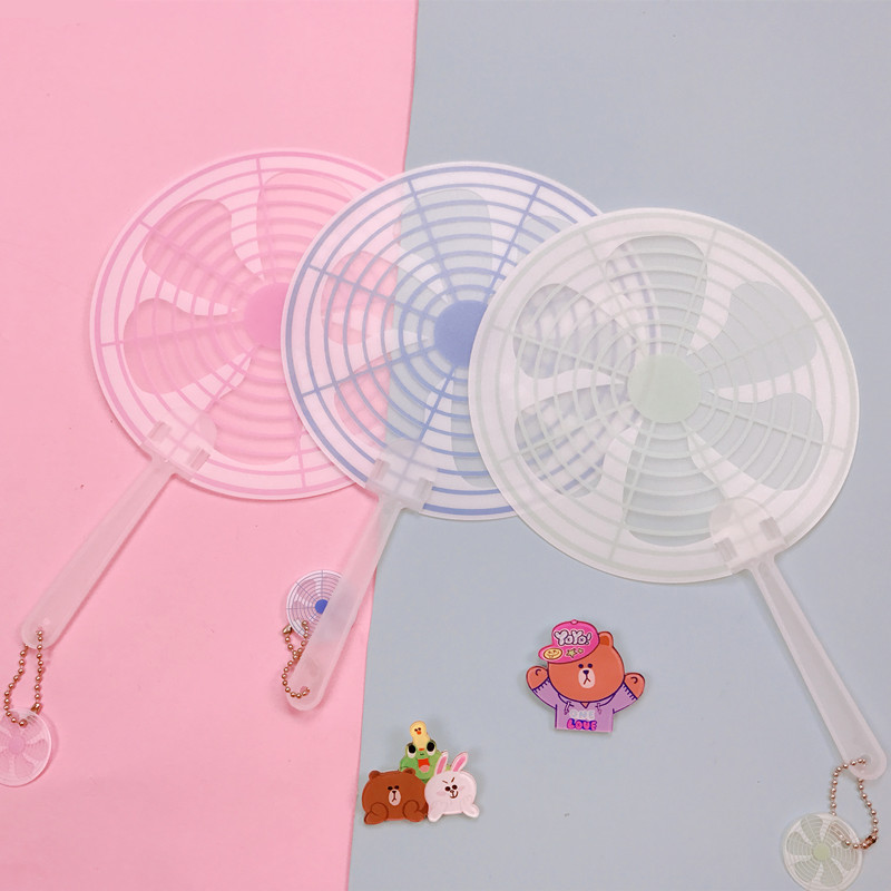 (Her main son) Lovely transparent Mini Handshake PP fan Summer Creative students holding fruit carry-on