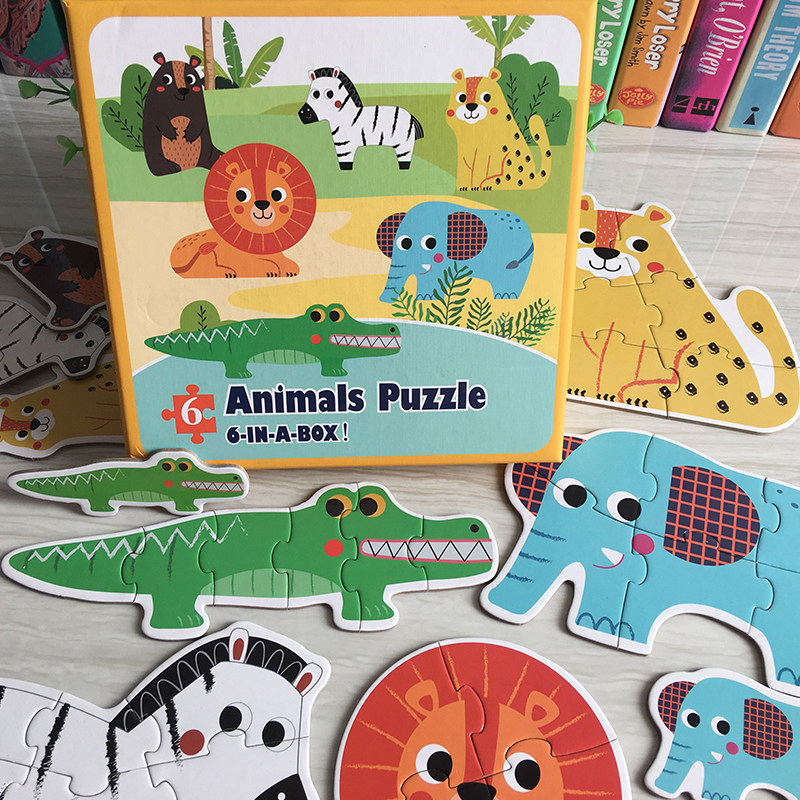 Young Children Puzzle Six All-in-one Large Block Simple Jigsaw 1-2-3-4 Year Old Male Girl Puzzle Baby Puzzle Wooden